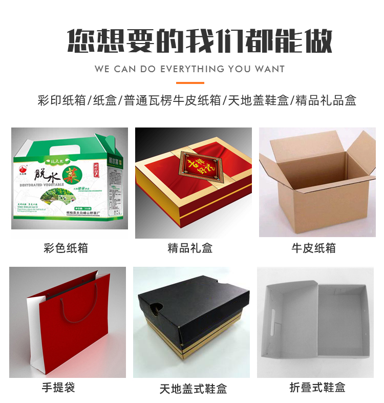 武陟縣君玉包裝有限公司是一家集設(shè)計、制版、印刷、后工為一體的紙制品生產(chǎn)企業(yè),產(chǎn)品主要分類:彩印紙箱、紙盒、普通瓦楞牛皮紙箱、天地蓋鞋盒、精品禮品盒等紙制品包裝。